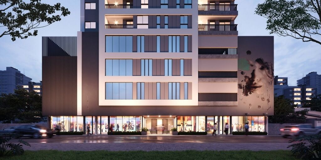 Trata-se de um empreendimento residencial com projeto arquitetônico moderno e fachada contemporânea, composto por 21 pavimentos, sendo 4 pavimentos destinados a garagens e 15 pavimentos de apartamentos tipo, com 6 unidades por andar. O edifício conta com 3 elevadores, garantindo praticidade e fluidez na circulação.