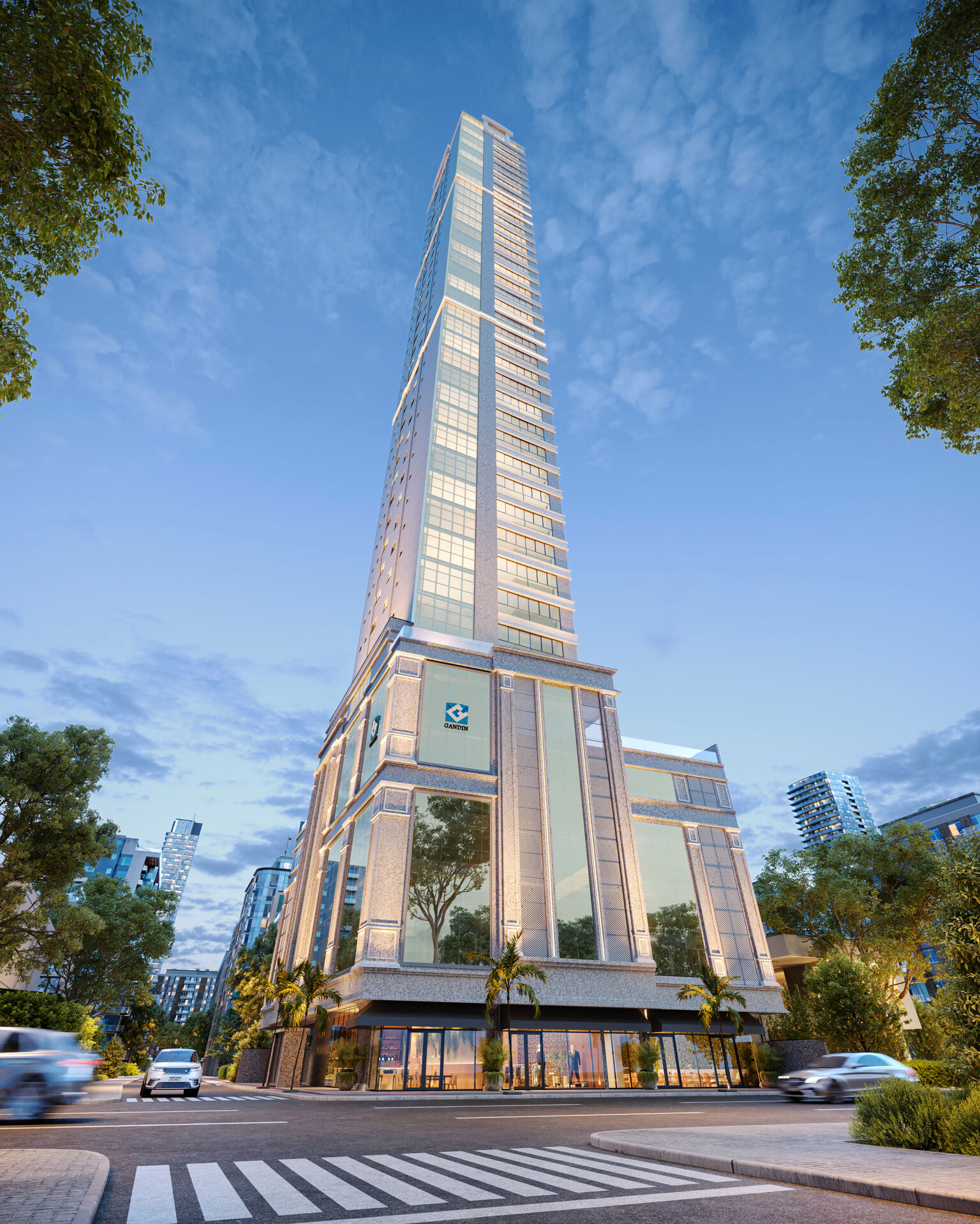 O imóvel conta com excelente padrão de acabamento, incluindo teto em gesso e piso em porcelanato, além de acessibilidade para pessoas com necessidades especiais. Possui living integrado às salas de estar e jantar, proporcionando ambientes amplos e bem iluminados.