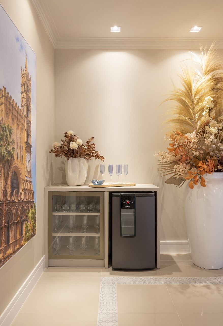 O apartamento conta com acabamento em gesso e detalhes no teto, proporcionando um ambiente moderno e elegante. Possui living integrado à sala de estar, varanda com churrasqueira, lavabo, cozinha funcional, área de serviço, banheiro social, banheiro de serviço e banheiro auxiliar, além de uma suíte e um dormitório. O imóvel dispõe de piso em porcelanato, portas laqueadas, blindex e esquadrias de alumínio branco, unindo sofisticação e praticidade. Equipado com lareira, tubulação para ar-condicionado tipo split, aquecimento a gás, infraestrutura para água quente, interfone, internet, circuito de TV e alarme, oferece conforto, segurança e tecnologia em todos os detalhes.