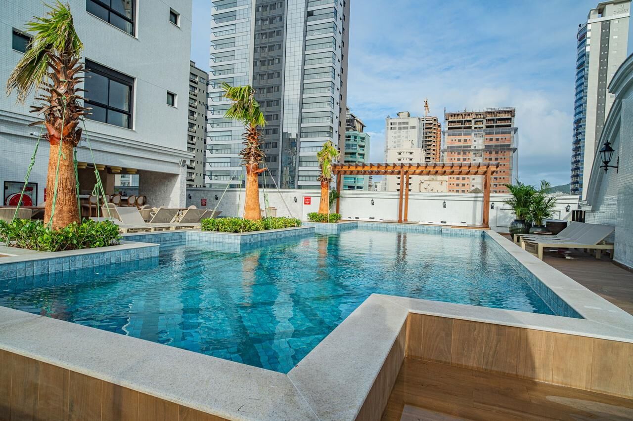 O amplo living com vista panorâmica integra-se à sacada gourmet, equipada com churrasqueira e sistema anti-fumaça com exaustor individual, ideal para quem valoriza momentos de lazer com privacidade. A cozinha se harmoniza com o espaço social, garantindo funcionalidade no dia a dia.