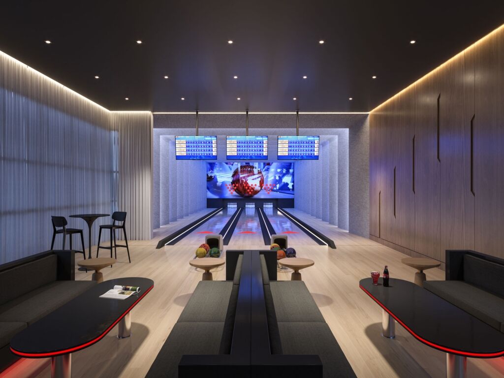 As áreas comuns são totalmente mobiliadas, equipadas e decoradas, oferecendo ampla infraestrutura de lazer e convivência. Entre os ambientes disponíveis estão academia, lounge, espaço gourmet, pub, cinema, boliche, sala de games, sala de jogos, sala de carteado, salão de festas, cinco salões gourmet, brinquedoteca, playground, espaço de beleza, fire pit, sauna e spa com hidromassagem. O complexo conta ainda com piscinas adulto, infantil e térmica, prainha, deck, quadra poliesportiva, mini quadra esportiva, bocha, vestiário, bar molhado, quiosque, relax lounge e espaço zen com área para yoga.