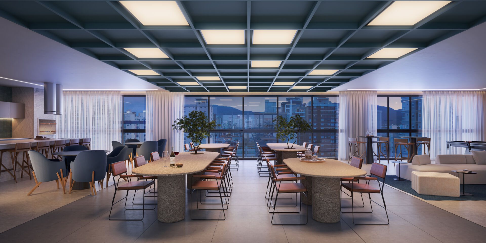 O empreendimento apresenta um conceito inovador de lazer e convivência, com espaços pensados para proporcionar experiências completas, conforto e bem-estar em todos os momentos. A praça suspensa integra áreas de convivência e relaxamento, conectando diferentes ambientes com sofisticação e funcionalidade.